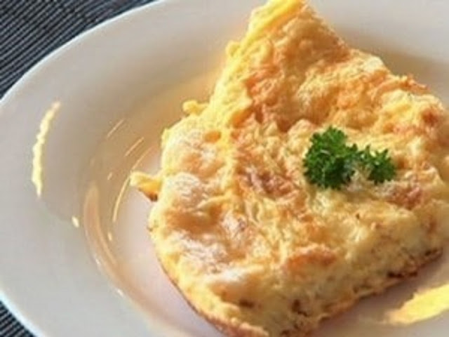 Stir the eggs with a fork and add cheese, parsley and chives.